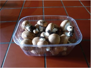 Inzwischen ernteten wir die ersten Pilze: