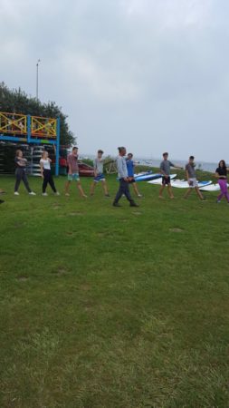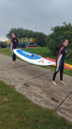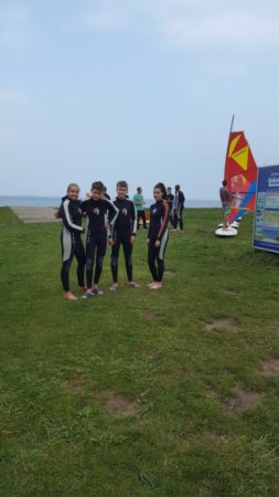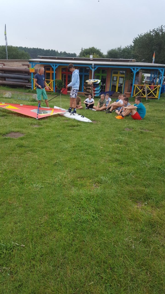 Den gestrigen Nachmittag verbrachten wir am Strand von Prora, in der Nähe des Ostseebades Binz. Es war ein typischer Ostseestrand, weißer und feiner Sand, viele Möwen und große Wellen. Schon bei unserer Anfahrt fiel uns ein sehr langer Gebäudekonplex auf. Wie wir erfuhren, handelt es sich bei diesem Bauwerk um den einstigen Kraft-durch-Freude-Bau aus der Nazizeit. Viereinhalb Kilometer soll er lang gewesen sein und sollte als „Koloss von Rügen “ zur Erholung für 20 000 Menschen dienen. Durch den 2.Weltkrieg wurde diese Nutzung verhindert. Zu DDR-Zeiten waren ca. 10 000 Soldaten in Prora stationiert und Strand sowie das gesamte Gelände unter militärischer Aufsicht. Heute sind die Anlagen wieder zugänglich. Es gibt eine Jugendherberge, einen internationalen Jugendzeltplatz, Hotels, Museen und Luxuswohnungen. Den letzten Tag verbringen wir bei stärkerem Wind und Wellen beim Surfen. Die Schüler werden in drei Gruppen von Surflehrern in die Theorie eingewiesen, bevor es auf die Bretter im Wasser geht. Als erste Windsurfschülerin steht Jasmin auf dem Brett. Tim, Otto und Hagen bringen uns das 1×1 des Windsurfens bei. Wir sind sehr stolz auf uns, alle kommen gut voran. Zum Glück gibt es die Mittagspause zum Verschnaufen. Danach geht es weiter. Absolut passend ist das Wetter heute, nicht zu warm und guter Wellengang. Am Abend wird zum Abschluss noch gegrillt.
