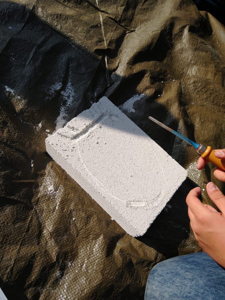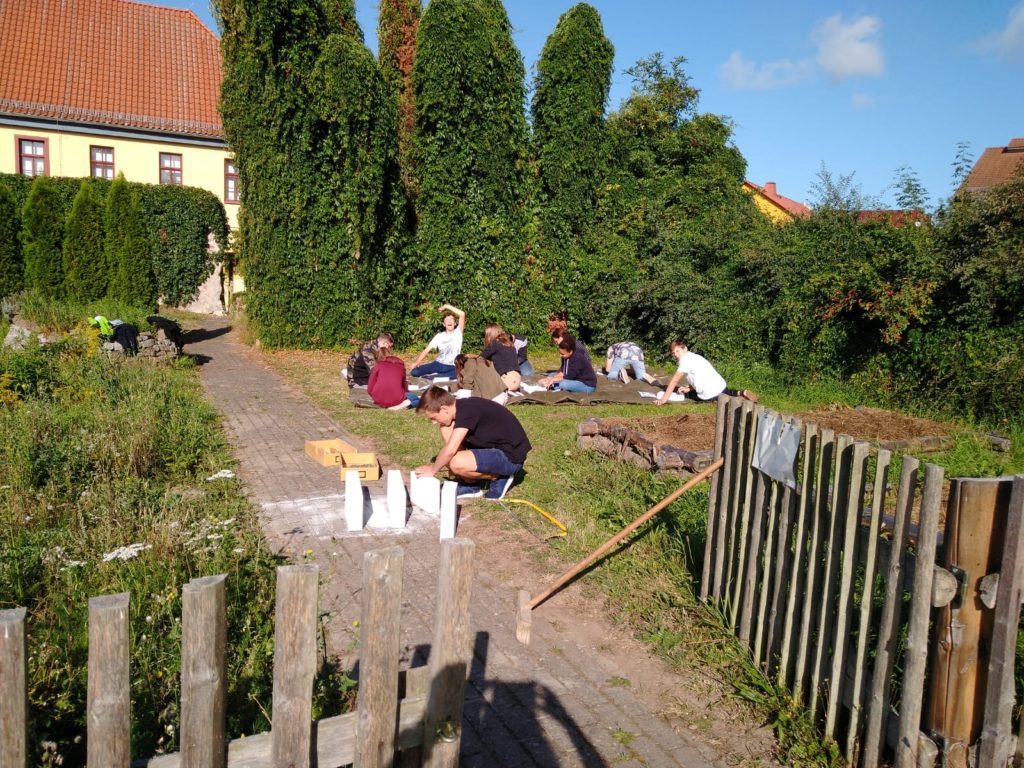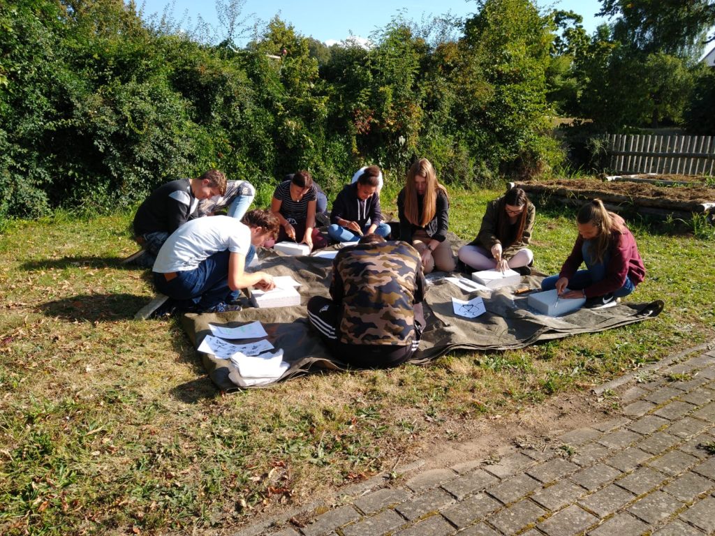 Im Rahmen des Kunstunterrichts haben die Schüler der Klasse 10 A ihre künstlerisch-praktische Tätigkeit in den Schulgarten verlegt. Die fleißigen Bildhauer meißelten insektenartige Gebilde aus Ytongsteinen. Die fertigen Reliefs sollen alsbald im Schulwald ihr neues zu Hause finden.