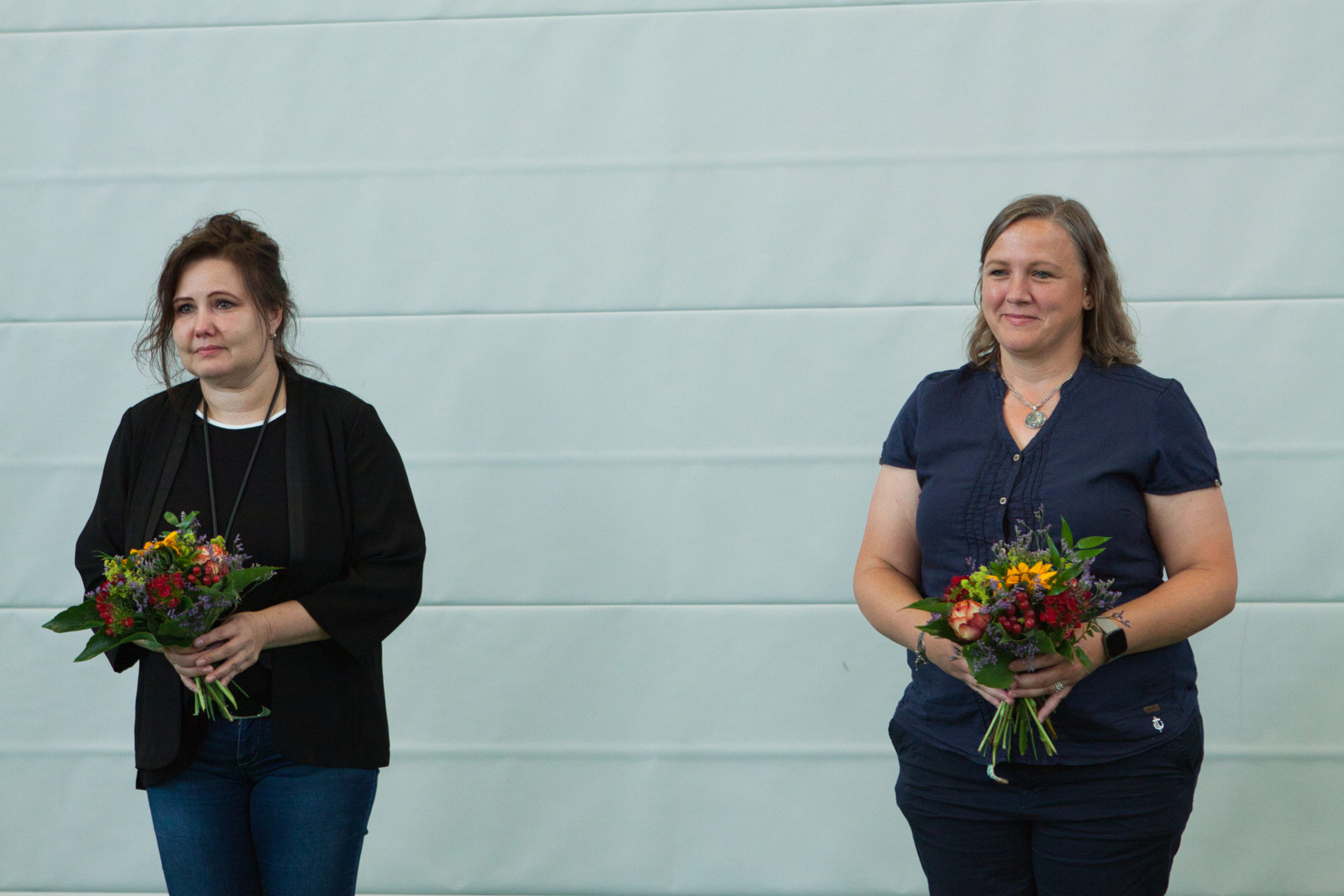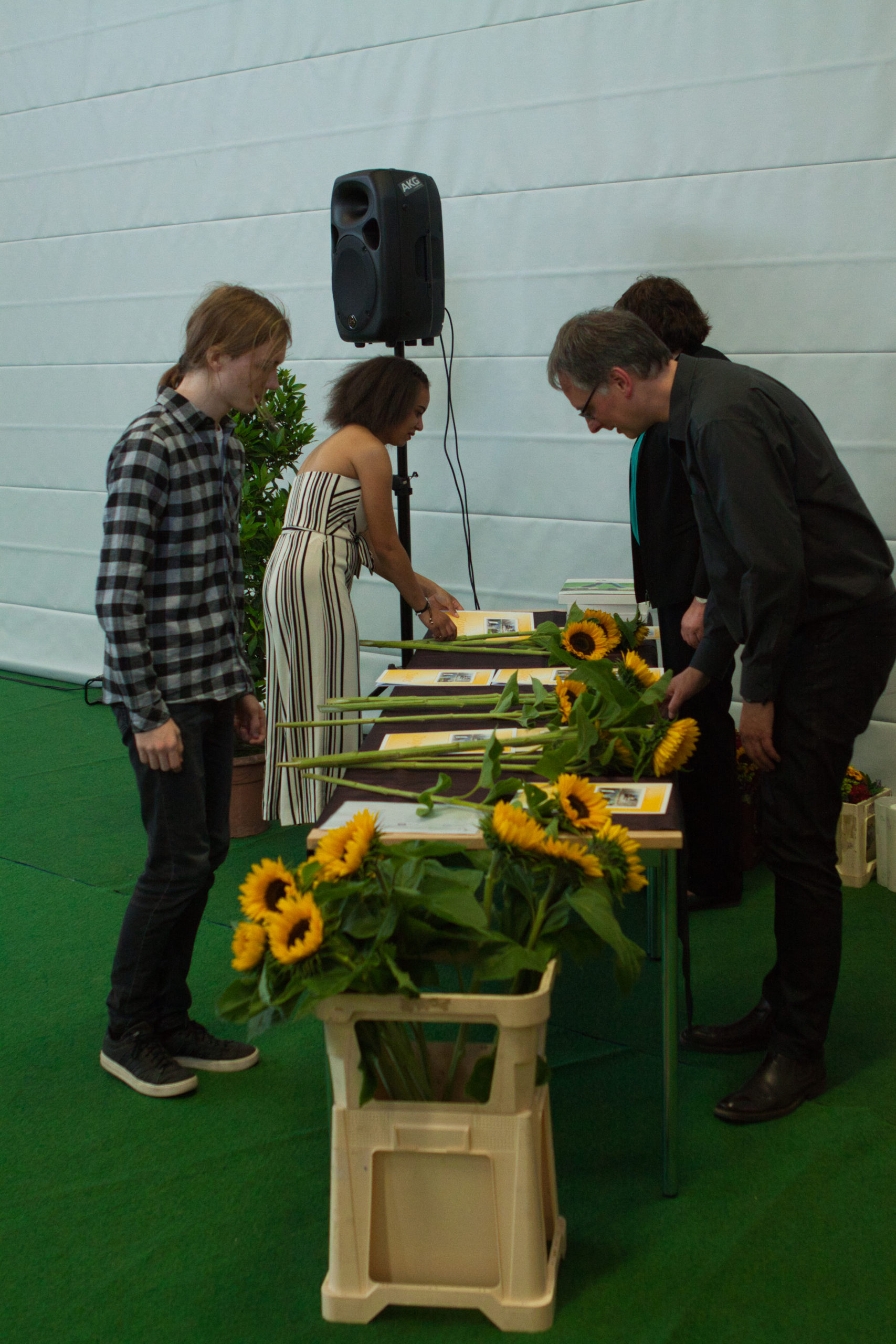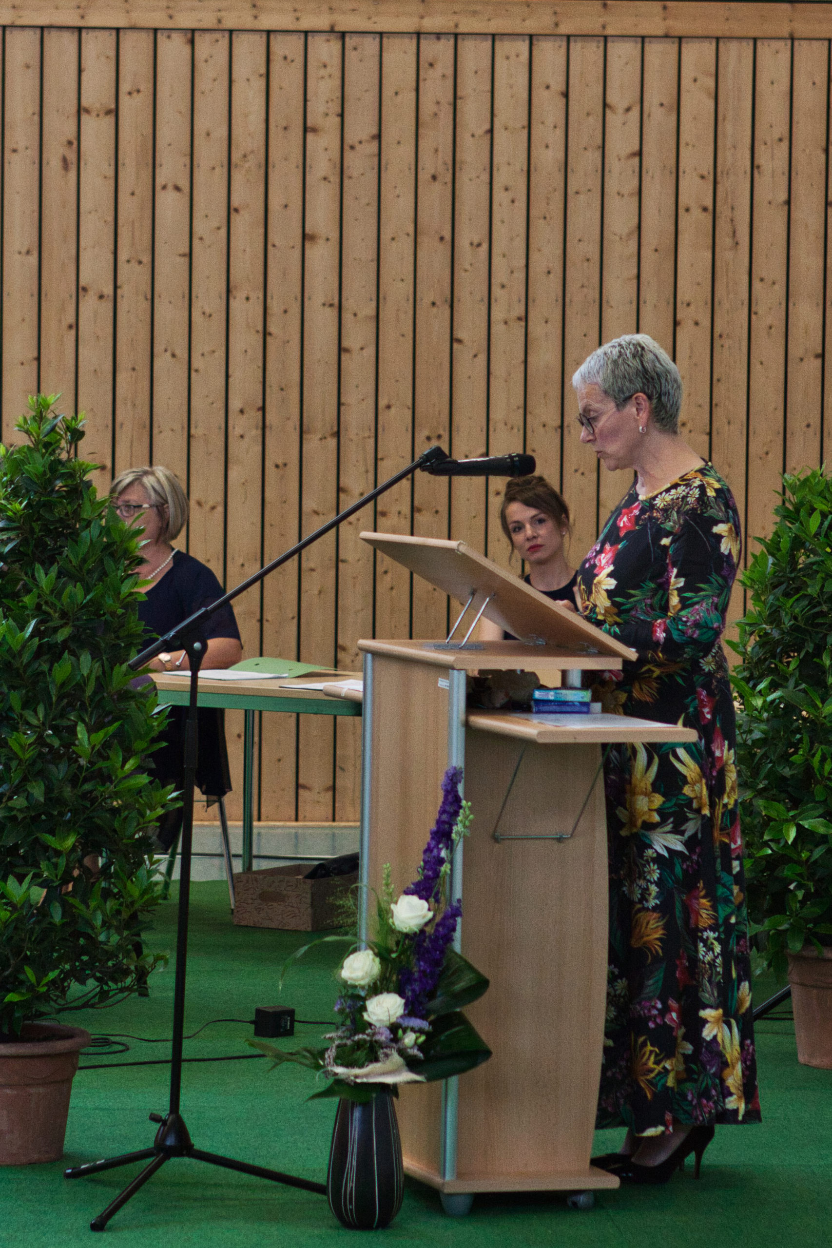 Es war wichtig, die Eltern in die Abschlussveranstaltung mit einzubinden. Sie haben ihr Kind und die Schule über Jahre bis zum Realschulanschluss begleitet und unterstützt. Sie sollten diesen feierlichen Moment der Zeugnisübergabe miterleben können. Frau Heß war es ein Bedürfnis, einigen Eltern mit einem Blumenstrauß für ihr großes Engagement für die Klassen- und Schulgemeinschaft zu danken.