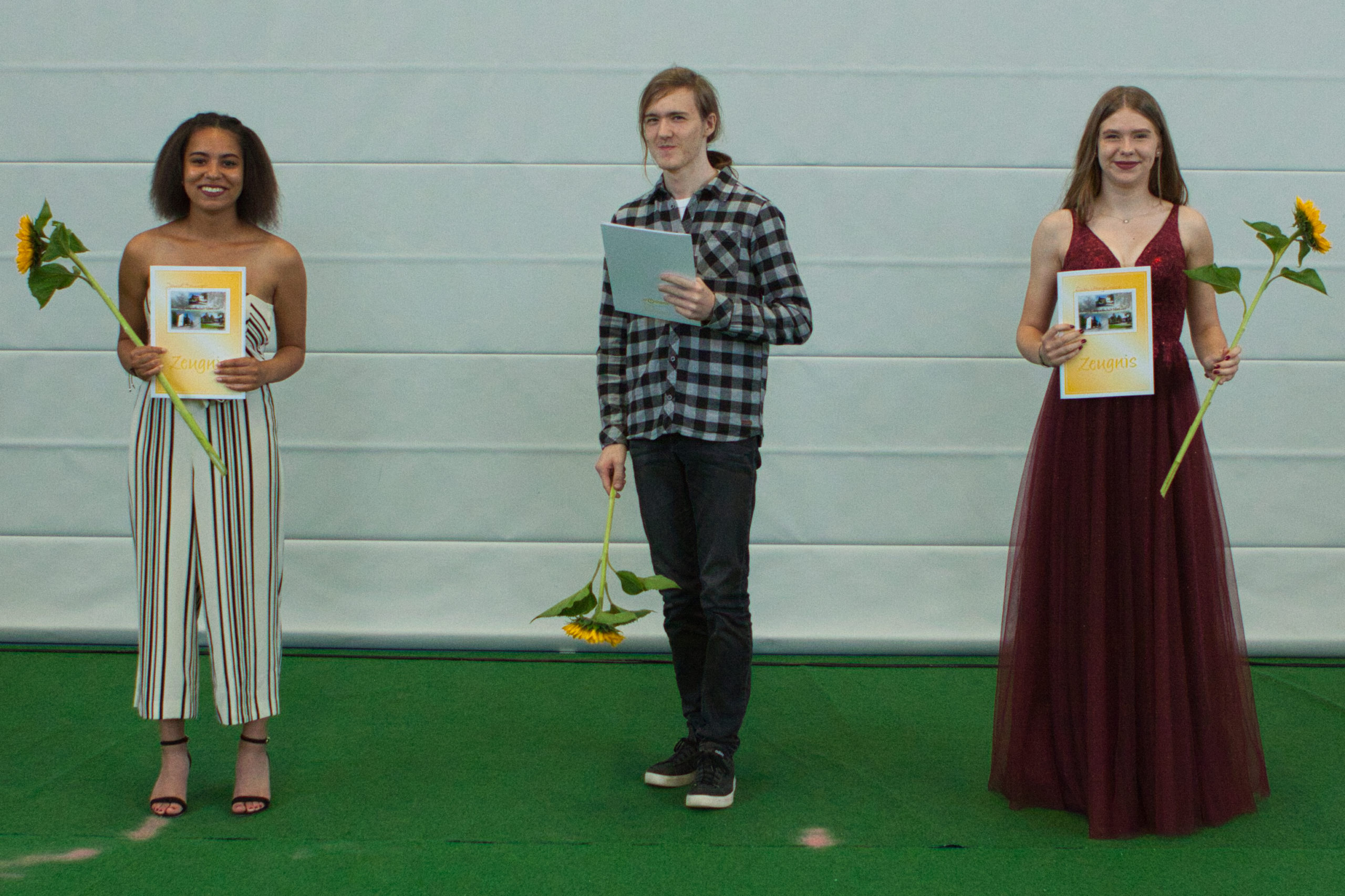 Am Freitag, 10. Juli 2020 fand die feierliche Zeugnisausgabe für unsere Abgangsschüler statt. Auch hier waren die aktuellen Hygienebestimmungen einzuhalten, darum fand die Übergabe in drei Gruppen statt.