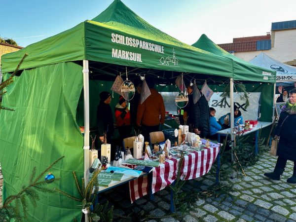 Zur Schlossweihnacht in Marksuhl übergaben Herr Börner und Herr Ullrich als Vorsitzende des Fördervereins der Schlossparkschule einen zweiten Pavillion an unsere Schule. Somit konnten wir einen schicken Stand zum Weihnachtsmarkt präsentieren. Dafür im Namen aller Schüler und Kollegen einen herzlichen Dank!