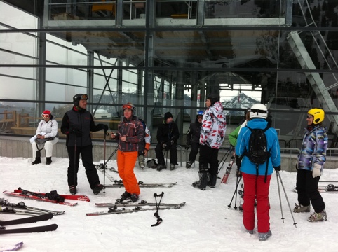 Den ersten Tag auf der Piste haben wir mit Erfolg geschafft, vor allem die Anfänger auf Ski konnten große Fortschritte erzielen. Das Wetter war gut, ab und an kam auch die Sonne durch.