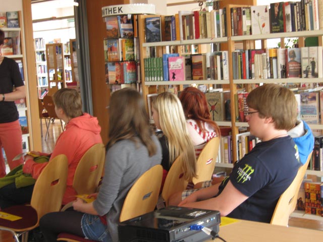 Am 26.04. informierte unsere Bibliothekarin Frau Jäger die Schüler der Klassenstufe 9 im Rahmen des Projektes „Lesezeit“ über Dienstleistungen für ihre Leser.