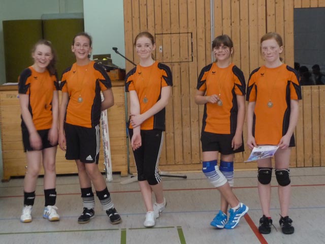 …eingeladen waren die Sieger der Kreisfinals der Wettkampfklasse 4 im Volleyball. Da unsere Mädels im Landkreis vor einigen Wochen einen hervorragenden ersten Platz belegten, durften Laura, Luisa, Jasmin, Selina und Luisa am Dienstag gemeinsam mit Herrn Fibich nach Arnstadt reisen. Auch wenn die Mitschüler an diesem Tag einen variablen Ferientag hatten, waren sie bereit für die Schule zu spielen und zu kämpfen.