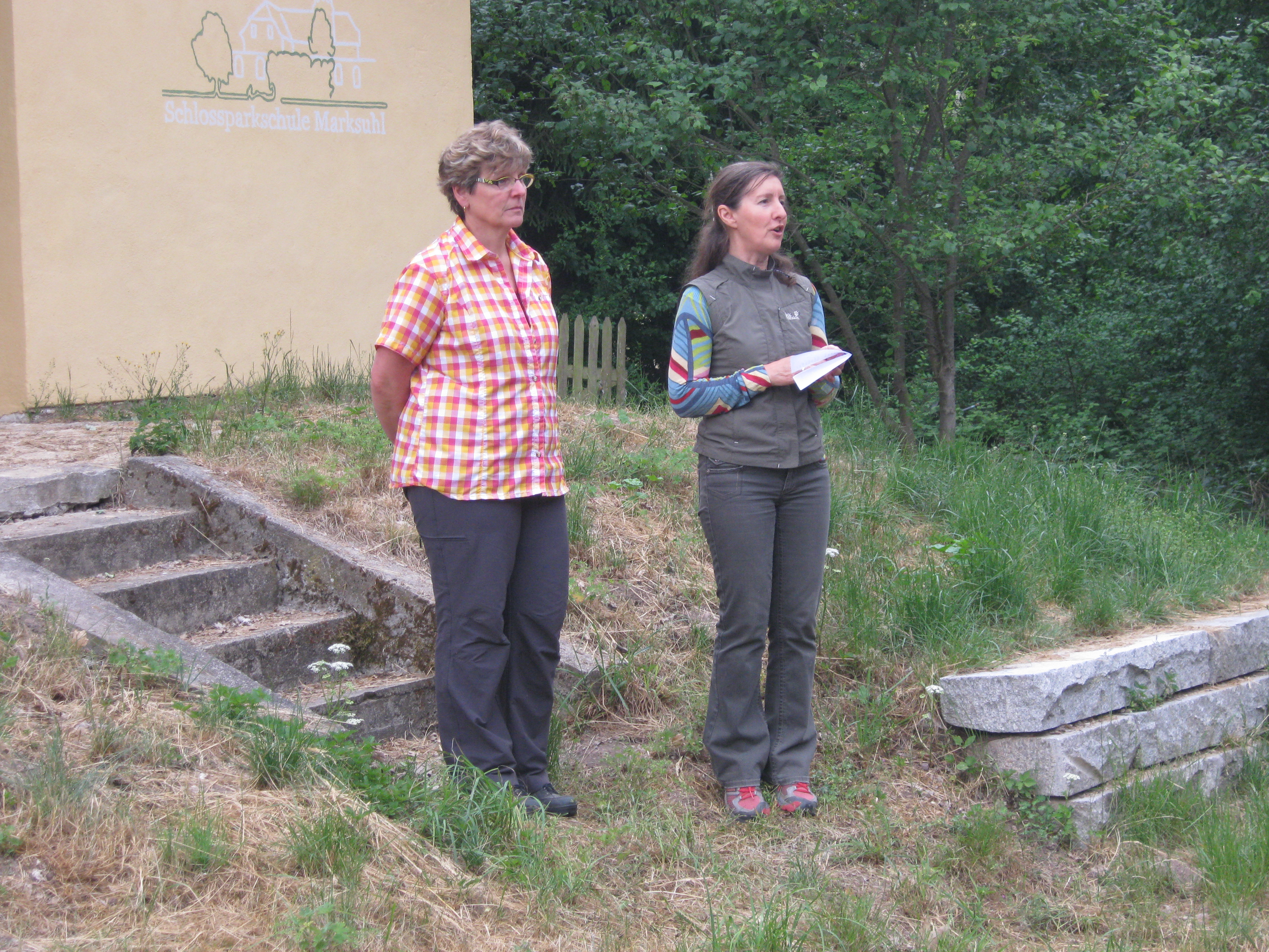 Die Gruppen „Trockene Wiese“, „Feuchte Wiese“ und „Wald“ bestimmten Tier- und Pflanzenarten nun an verschiedenen Standorten. Nach getaner Arbeit ging es zurück zum Schulwald, wo schon leckere Bratwürste auf uns warteten. Nach dem Essen stellten je zwei Vertreter der Gruppen ihre bestimmten Tier- und Pflanzenarten vor. Danach verabschiedeten uns Frau Fabig und Frau Köberlein in den wohlverdienten Schulschluss.