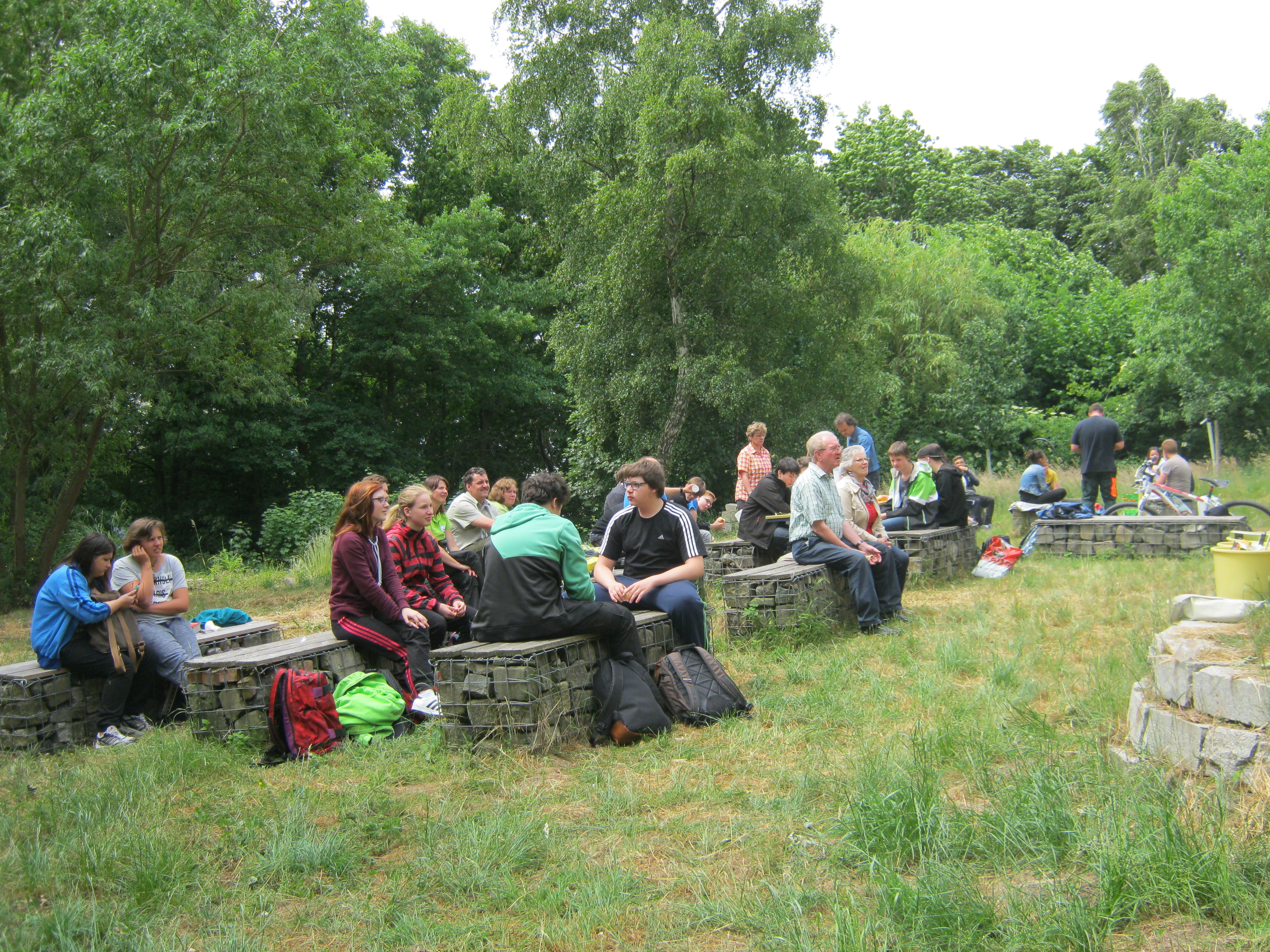 Die erste Gruppe „Trockene Wiese“ wurde von Frau Köberlein geleitet. Die zweite Gruppe „Feuchte Wiese“ wurde von Frau Fabig geleitet. Herr Gottbehüt und Herr Johne betreuten die dritte Gruppe, welche im Wald Bäume pflanzte, die aus unserem Schulwald stammen. Die vierte Gruppe unter Frau Thräns Leitung bestimmte am Schulwaldhäuschen Tiere und Pflanzen und legte einen Bestimmungsschlüssel an. Die fünfte Gruppe „Wald“ wurde von den Förstern Frau Jarski und Herr Simon geleitet. Die sechste Gruppe bestand aus Jacob und Pascal, welche unterstützt von Herrn Thrän Bratwürste auf dem Gelände des Schulwaldes gebraten haben.
